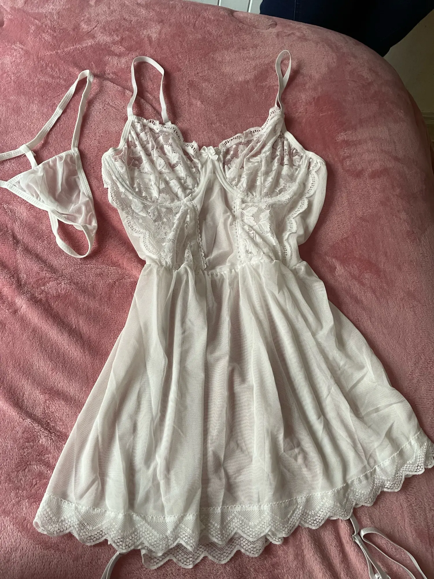 Whether it's a romantic evening, honeymoon, anniversary celebration, or simply treating yourself to something beautiful, this lingerie set makes every moment feel special. The timeless lace design and elegant silhouette ensure you'll feel confident and captivating.