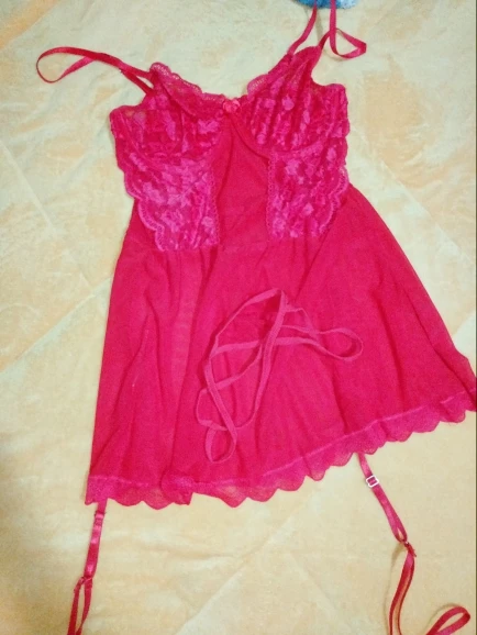 Red Sling Transparent Lace Lingerie Set - Sexy Nightdress with Panty