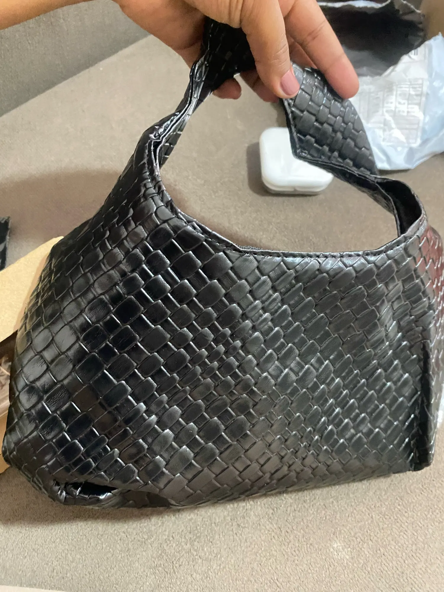 Woven Embossed Leather Hobo Bag - Classic Top Handle Shoulder Handbag